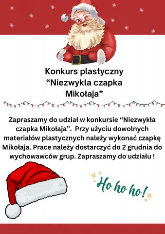 Zapraszamy dzieci do udziału w konkursie " Niezwykła czapka Mikołaja".