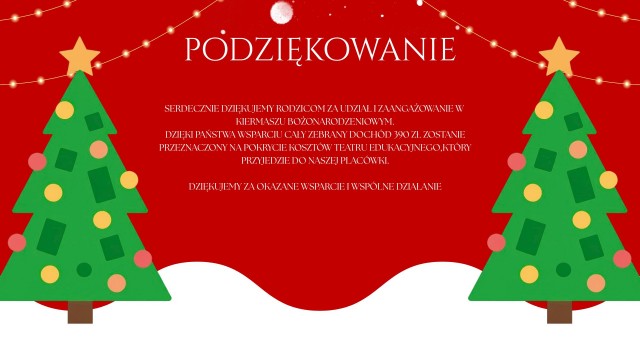 Serdecznie dziękujemy Rodzicom za udział i zaangażowanie w Kiermaszu Bożonarodzeniowym
